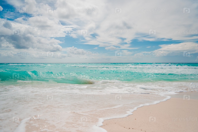 Белый песчаный пляж и голубое небо