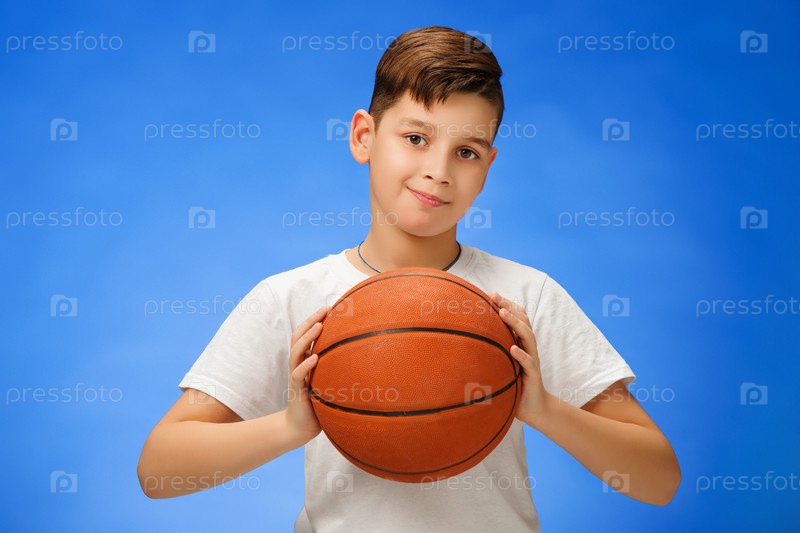 Очаровательный мальчик с мячом для баскетбола
