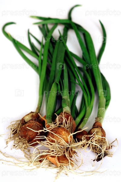 Зеленый свежий лук на белом фоне