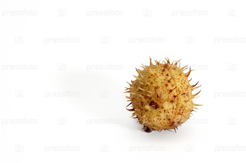 Желтый каштан на белом фоне