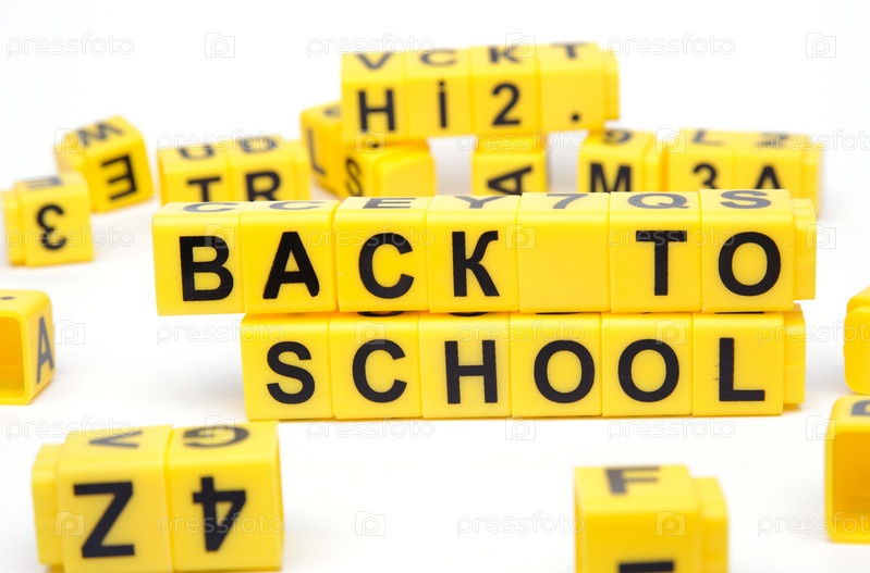 Желтые блоки со словами "снова в школу" на них