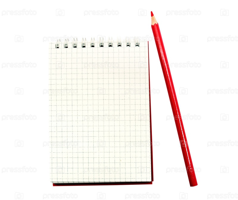 Блокнот с красным карандашом на белом фоне