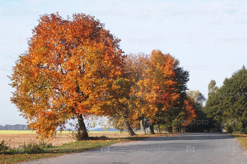 Желтые деревья возле дороги