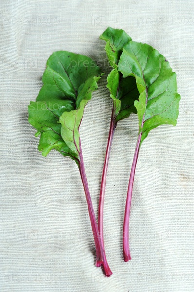Свежие зеленые свекольные листья на холсте