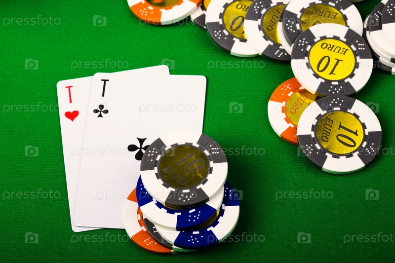 Карты и фишки на зеленом фоне