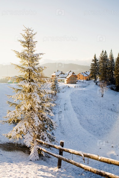 Деревня в горах зимой