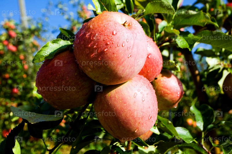 Красные яблоки на ветке