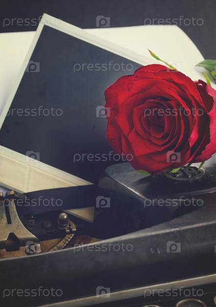 Красная роза на пишущей машинке