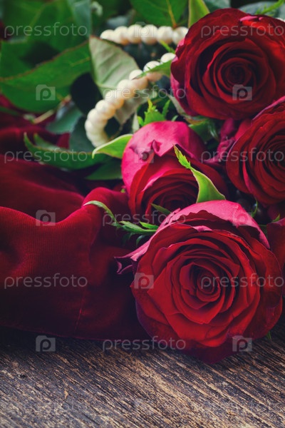 Красные розы на бархате
