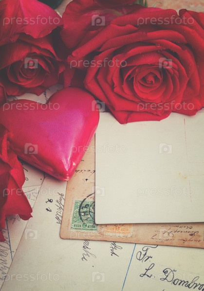 Старинный фон с сердечками и розами