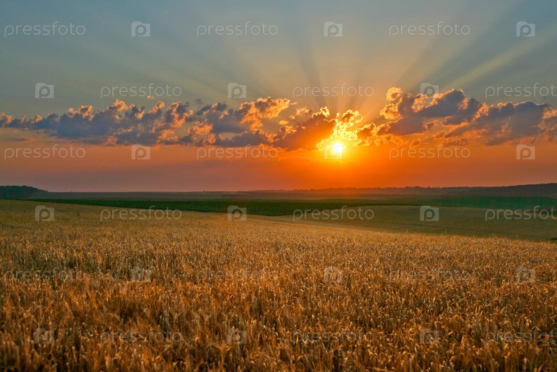 Желтое поле на фоне волшебного неба