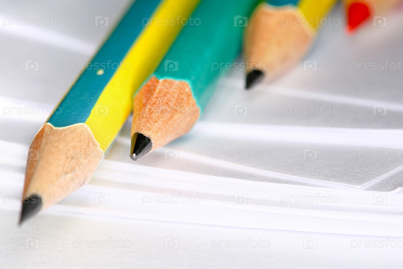 Карандаши на белой бумаге крупным планом
