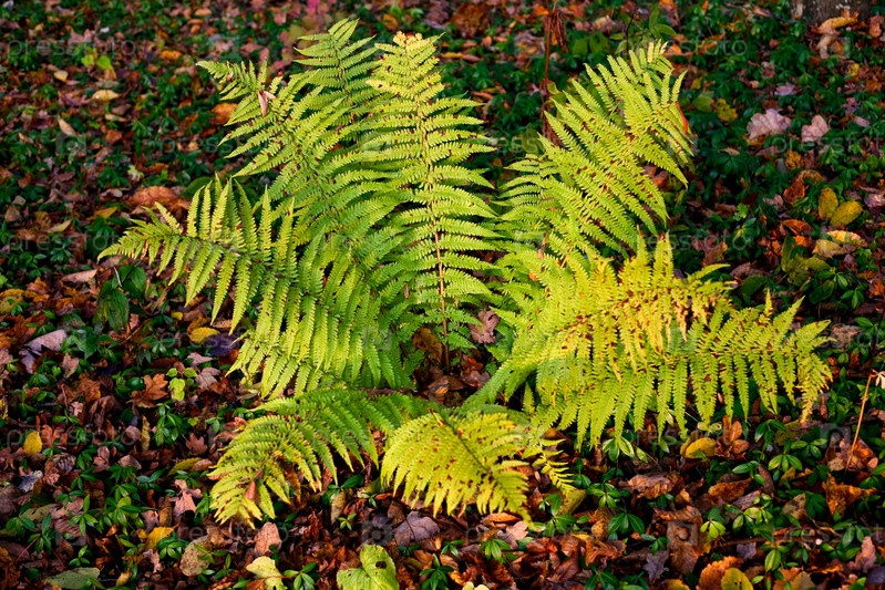 Листья папоротника в начале осени крупным планом