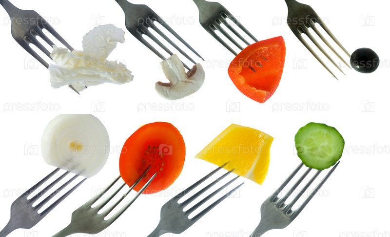 Восемь вилок с овощами