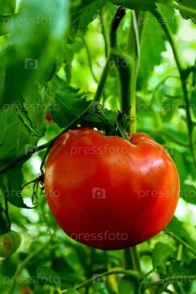Красный помидор в теплице крупным планом