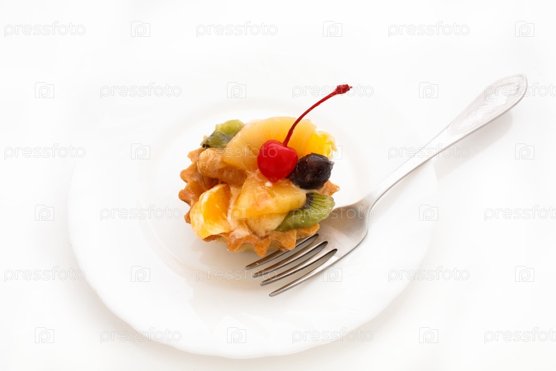 Кекс с вишней на белом фоне