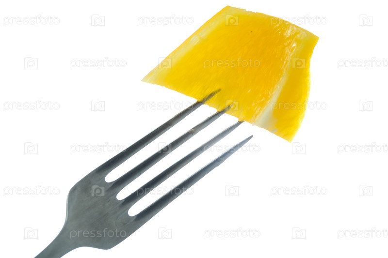 Кусок перца на вилке