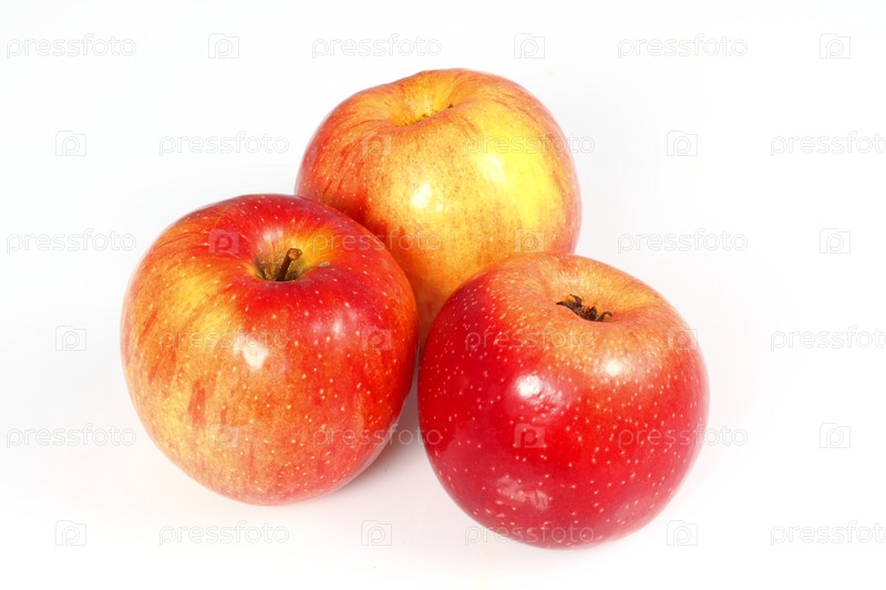 Три спелых яблока на белом фоне