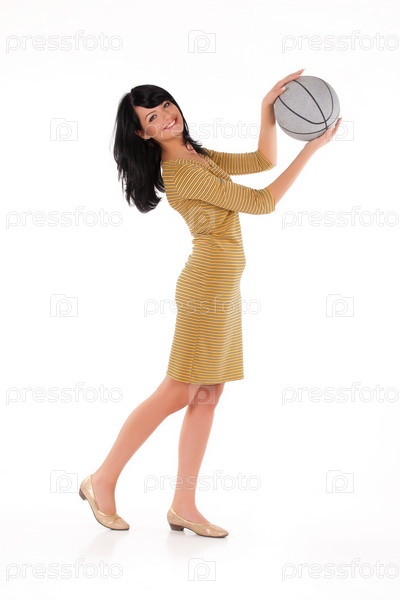 Молодая красивая женщина с мячом