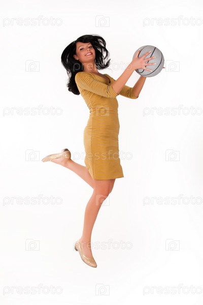 Молодая красивая женщина с мячом