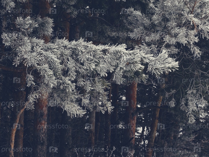 Снежные ели в лесу