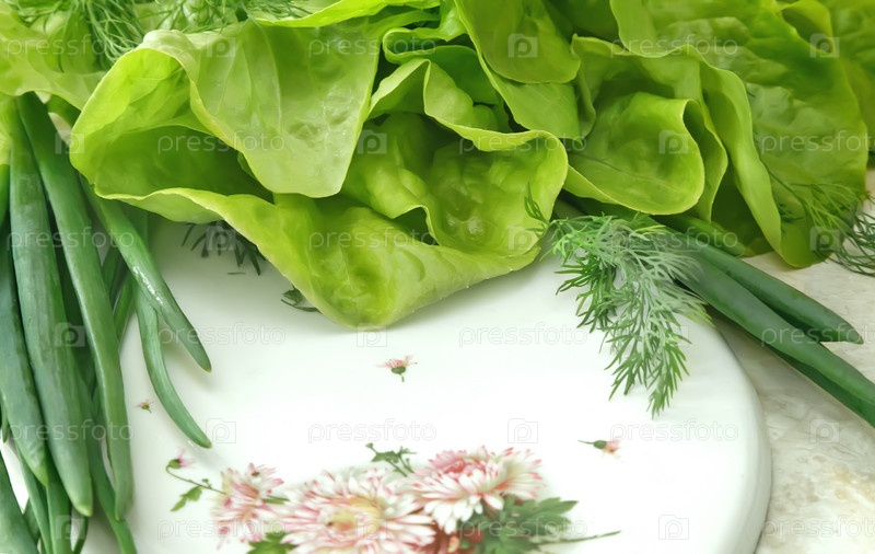 Овощи: зеленый лук, салат и укроп