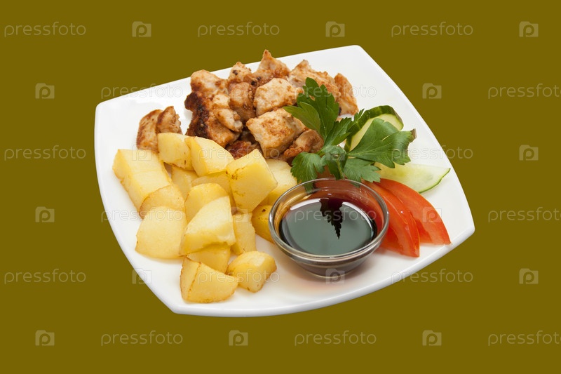 Шашлык из курицы с овощами и картофелем
