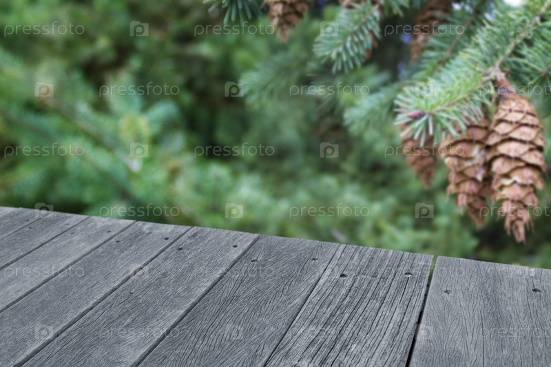 Деревянный стол на фоне леса