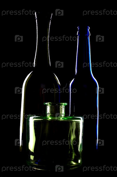 Силуэты бутылок на черном фоне