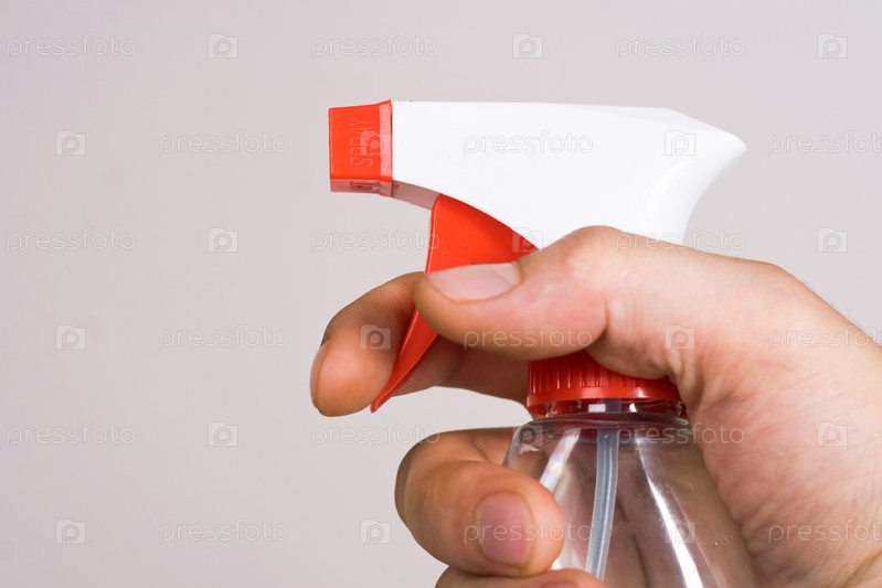 Бутылка с чистящей жидкостью в руке