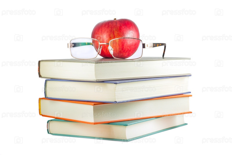 Книги с красным яблоком и очки
