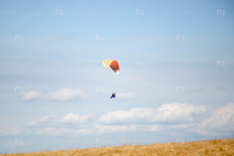 Парашютист над желтым полем