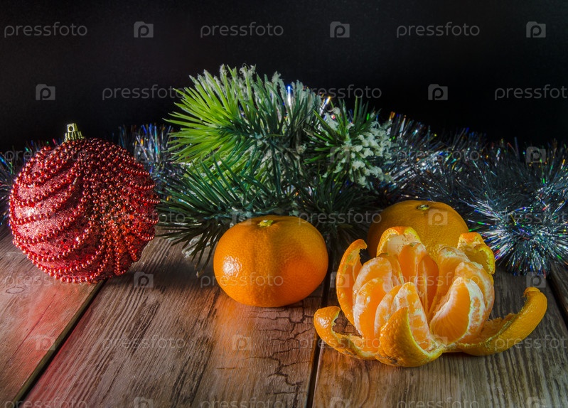 Мандарин и рождественские украшения