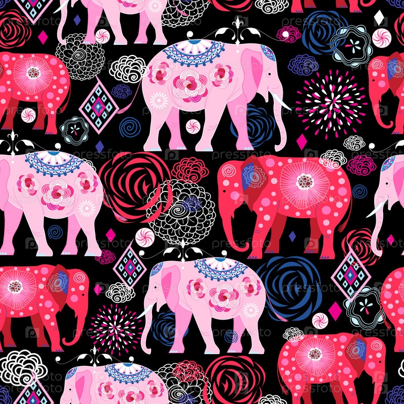 Яркий узор красивых слонов