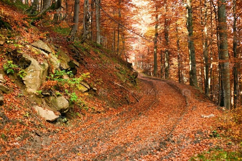 Дорога в желтом осеннем лесу