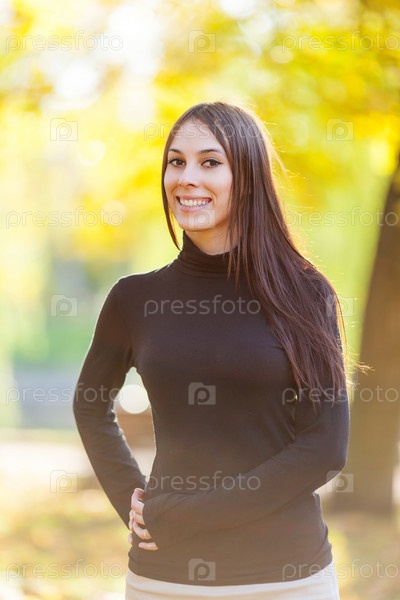 Брюнетка в осеннем парке