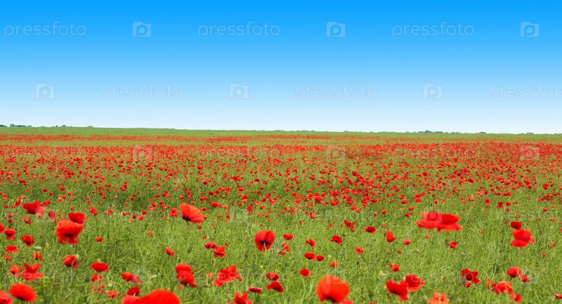 Зеленое поле с красными маками