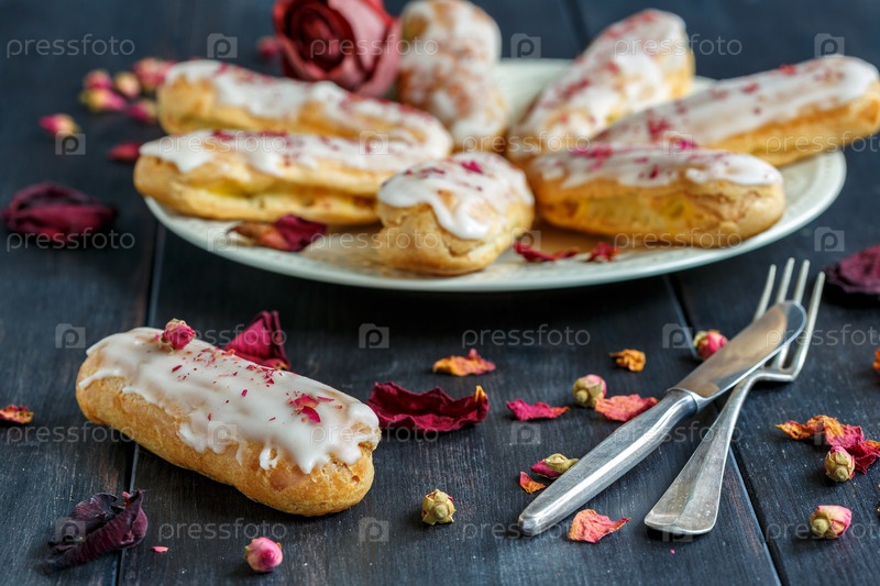 Ванильные эклеры с лепестками роз
