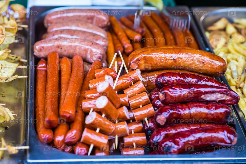 Вкусные жареные колбаски
