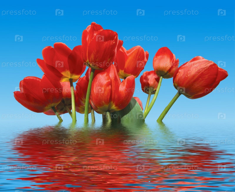 Красные тюльпаны в воде