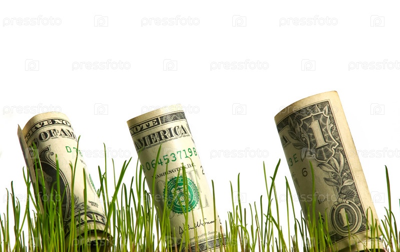 Однодолларовые купюры в траве