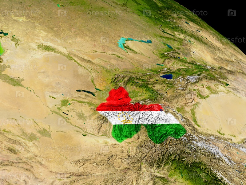 Таджикистан с флагом на земле
