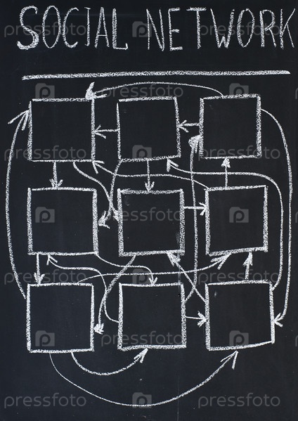 Схема социальной сети, нарисованная мелом на доске