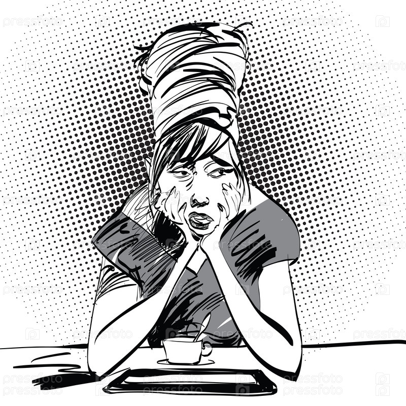 Грустная девушка с чашкой кофе