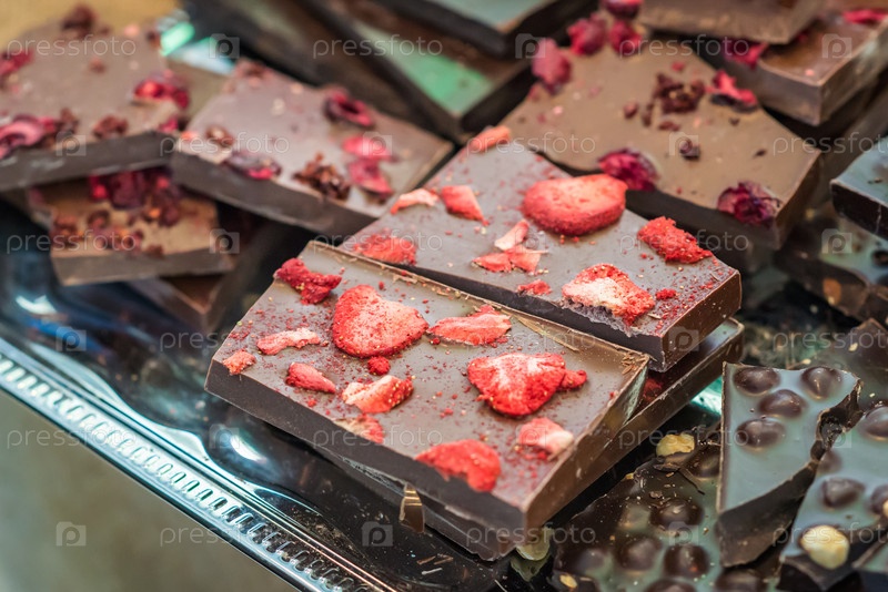 Кусочки шоколада с клубникой