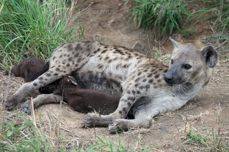 Гиена кормит щенков