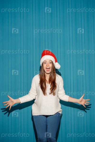 Счастливая девушка в рождественской шапке