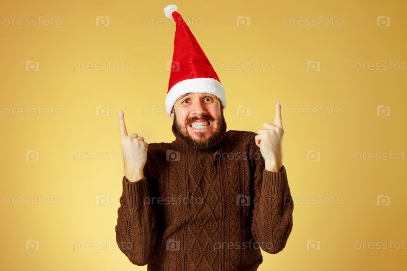 Эмоциональный мужчина в рождественской шапке