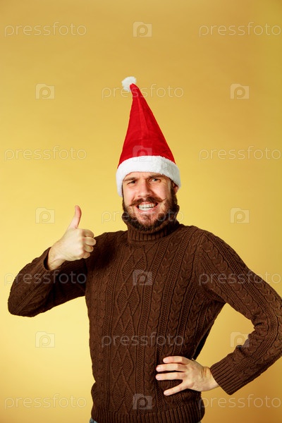 Эмоциональный мужчина в рождественской шапке
