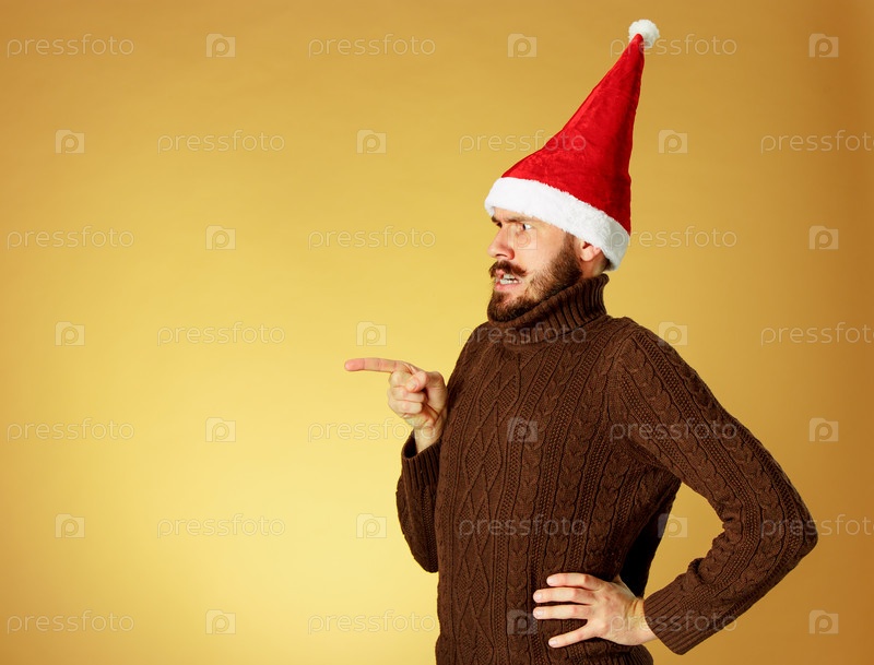 Эмоциональный мужчина в рождественской шапке